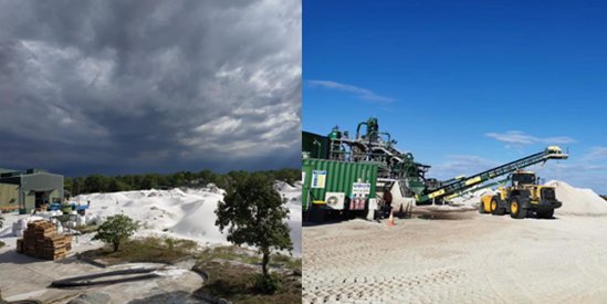 海南信义矿业有限公司日加工石英砂8000吨。由青峰矿业提供选洗矿及环保酸洗技术试验160余次,使用青峰矿业环保酸洗设备120套,年加工铁100ppm以下超白玻璃用砂140万吨。